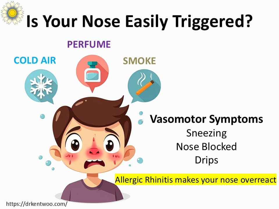 When your nose is already inflamed from allergic rhinitis, it becomes hypersensitive. This “reactive nose” swells up and starts producing mucus at the slightest trigger — cold air, cigarette smoke, perfumes, even sudden humidity changes.