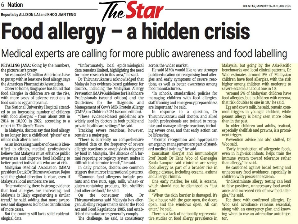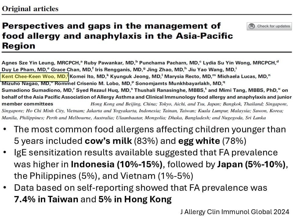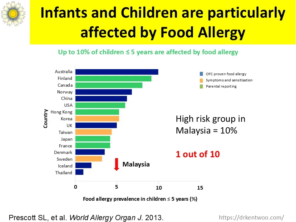Based on Asia-Pacific data and what we see in clinical practice, around 5% of Malaysian children have food allergies.