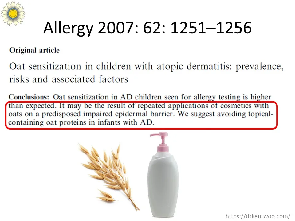 The study above warned against using oat proteins in skin care. A child with eczema used an oat‑based moisturizer and later suffered anaphylaxis after eating oats. This case underscores the real danger of transcutaneous oat sensitization. PubMed