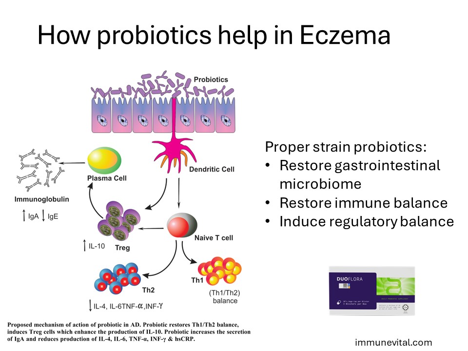 Current research shows that certain probiotics can help prevent eczema, a condition often linked to food allergies and asthma.
